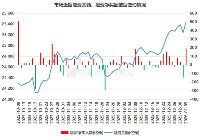 注:市场近期融资余额、融资净买额数据变动情况(截至1月5日数据)