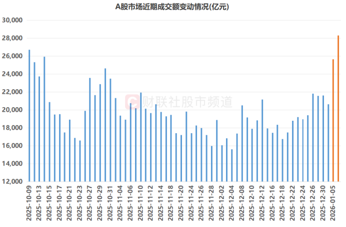 近期,A股交投活跃度持续攀升,截至今日(1月6日)收盘,市场已连续6个交易日斩获超2万亿成交额。其中,2026年以来的2个交易日量能数据较去年年末时增长更为明显,其成交额均站上2.5万亿元大关。