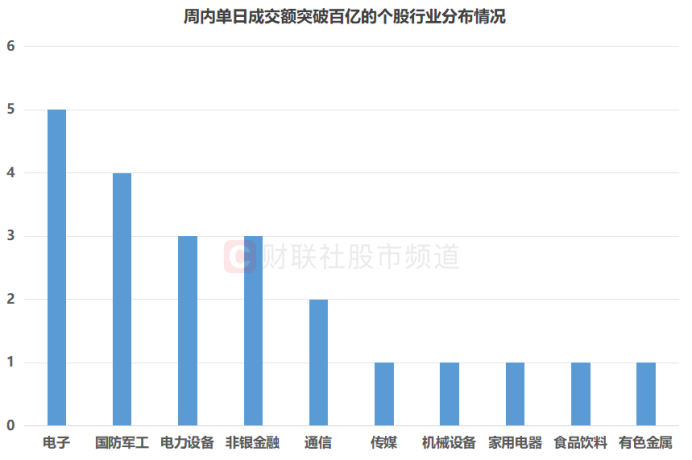 注:周内单日成交额突破百亿的个股行业分布情况(截至1月6日收盘)