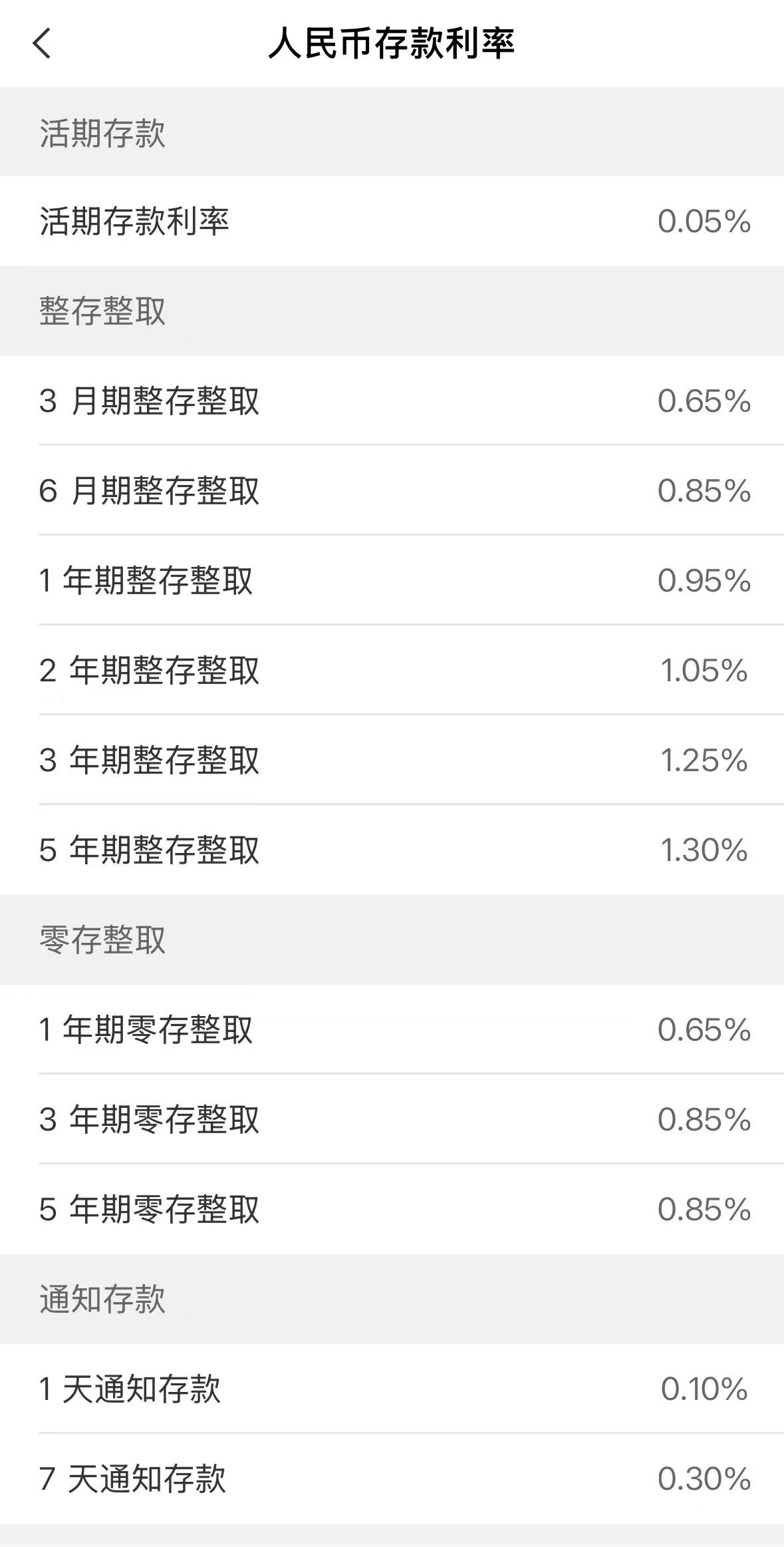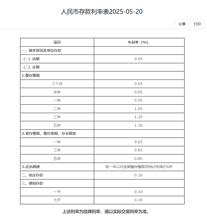 5月20日,工商银行、中国银行、建设银行、农业银行、邮储银行、交通银行下调人民币存款利率,一年期定期存款利率下破1%。