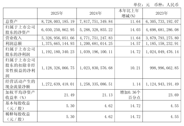 3月27日晚间,法拉电子(600563)披露2025年年报,报告期内,公司实现营业收入53.27亿元,同比增长11.64%;归属于上市公司股东的净利润11.92亿元,同比增长14.72%;基本每股收益5.3元。