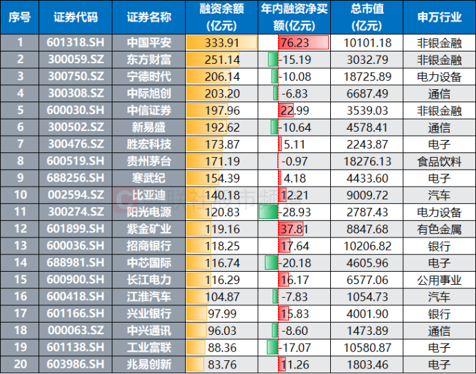 注:目前A股融资余额排行榜(截至3月31日数据)