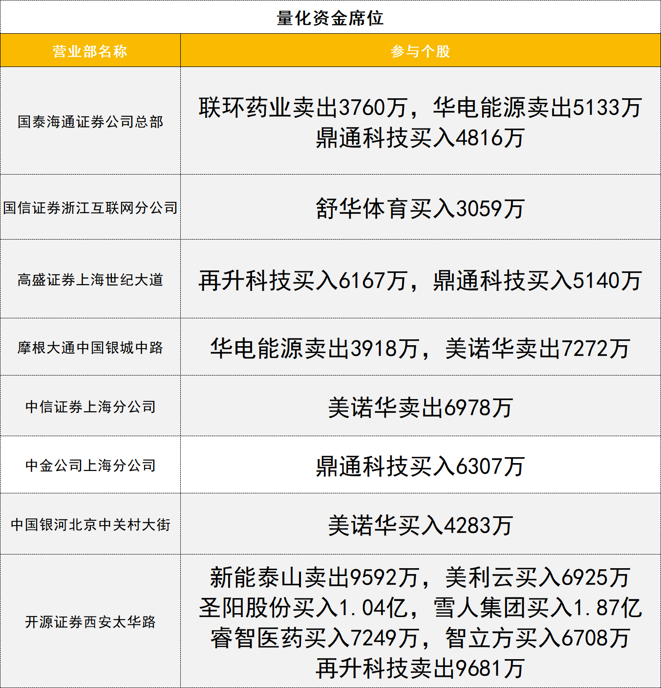 龙虎榜方面,可控核聚变概念股雪人集团尾盘涨停,获三家一线游资(国泰海通证券成都北一环路、国泰海通证券南京太平南路、国泰海通证券上海江苏路)合计买入1.83亿。圣阳股份今日冲板回落,一家量化(开源证券西安太华路)买入1.04亿,一家游资(国泰海通证券上海海阳西路)买入0.55亿,同时遭两家游资(国泰海通证券武汉紫阳东路、国泰海通证券成都北一环路)合计卖出2.59亿。