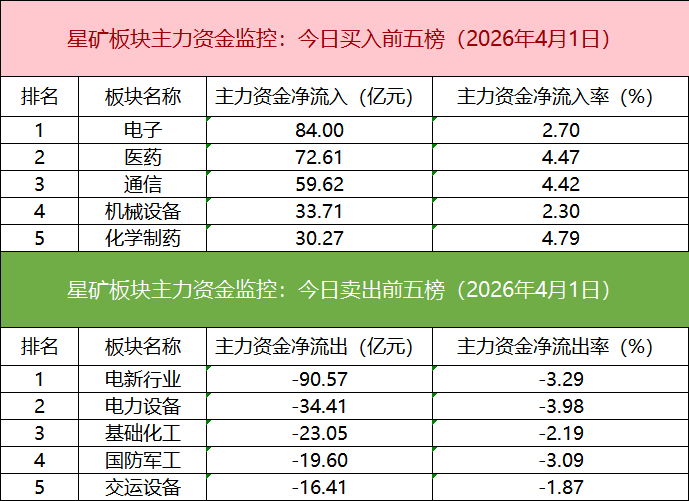 从主力板块资金监控数据来看,电子板块主力资金净流入居首。