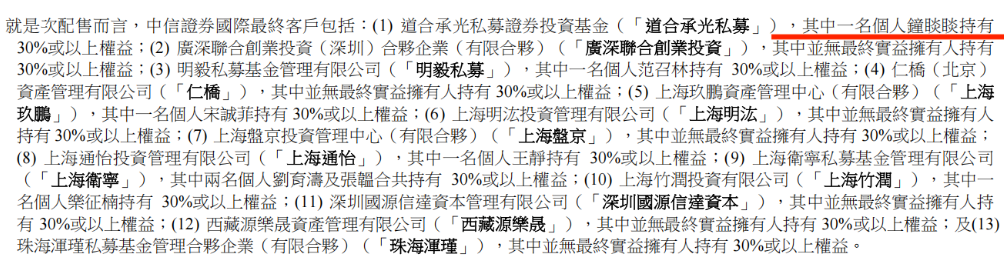 IFBH公告显示,道合承光私募是中信证券国际客户,通过中信国际证券进行了国际配售方面的认购。道合承光私募共获得84.68万股,也就是4234手,价值2354万港元。