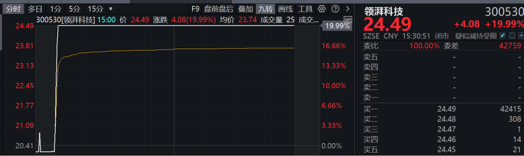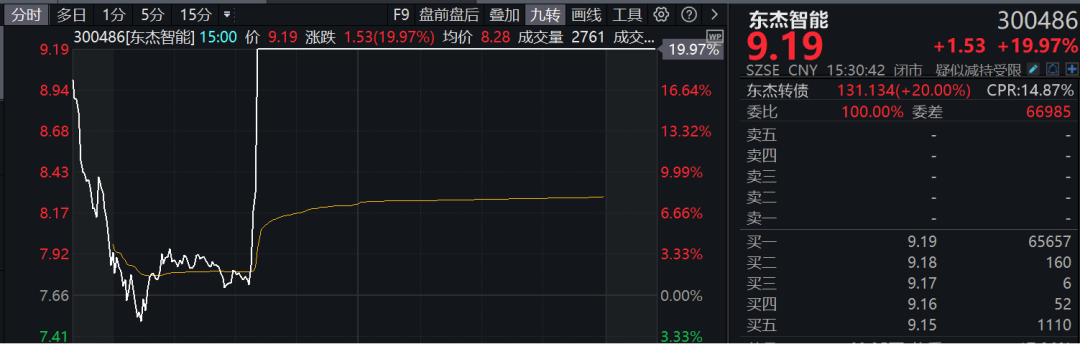 板块内个股掀起涨停潮,领湃科技开盘不到4分钟直线20%涨停,东杰智能亦垂直20cm封板,渤海汽车、两面针、湖南投资、上海三毛等近30股涨停或涨超10%。