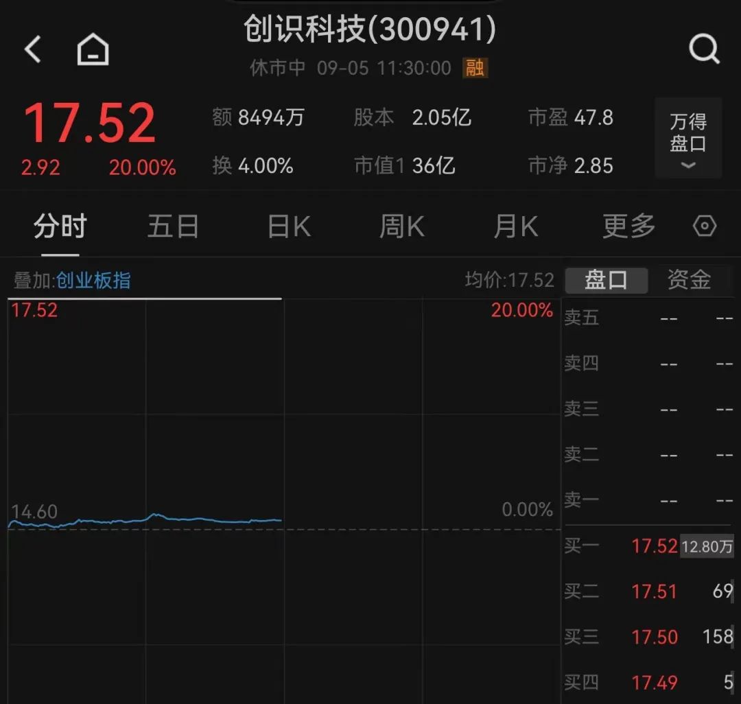 创识科技开盘一字20%涨停,神思电子高开后也仅用约5分钟就直线20cm封板,飞天诚信、恒宝股份等逾10股涨停或涨超10%。