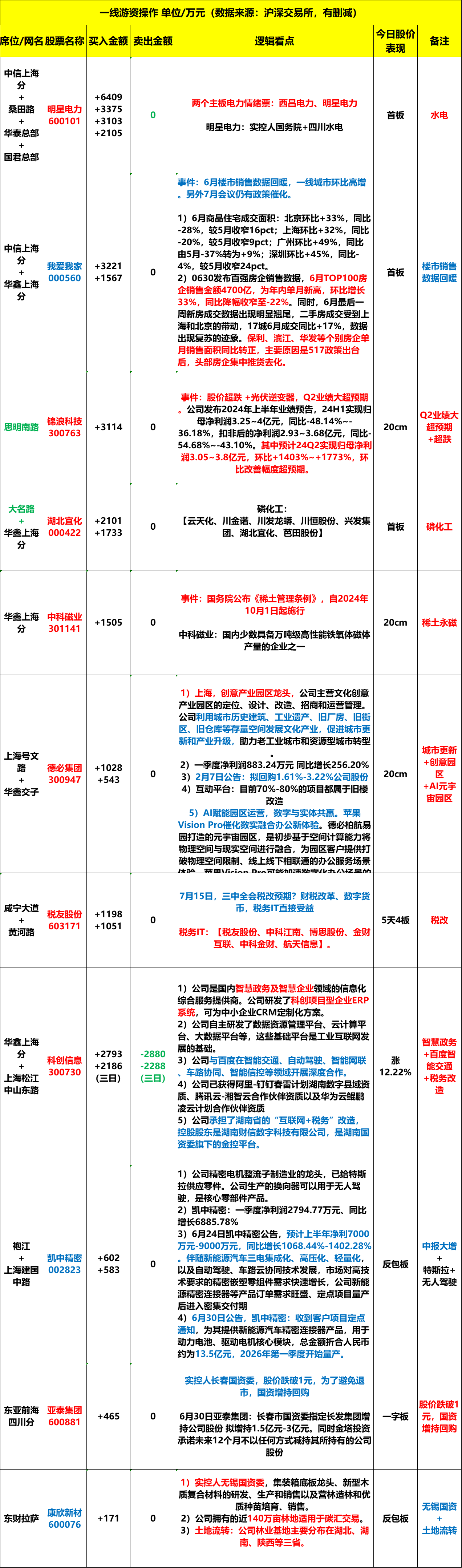 2024年7月1日周一,龙虎榜解析。