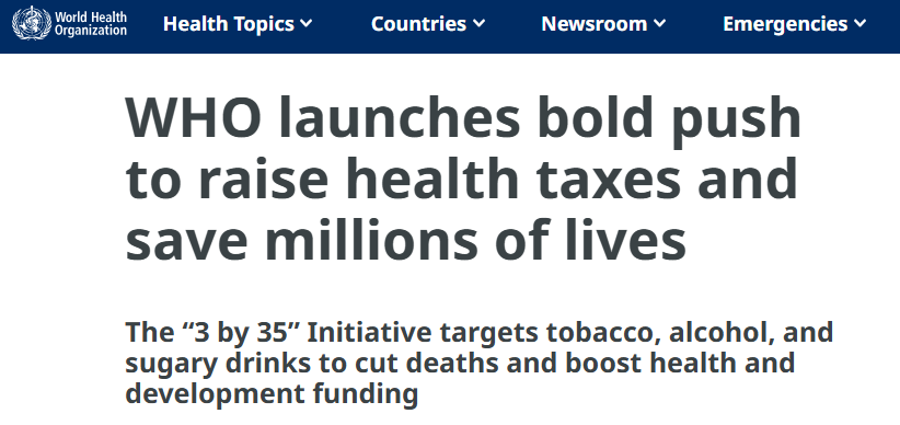 当地时间本周三(7月2日),世卫组织发起了一项名为“3by35”的倡议(到2035年落实3项健康税),呼吁各国通过征收健康税,到2035年将烟草、酒精和含糖饮料的实际价格提高至少50%,遏制慢性病的同时,还能创造重要的公共收入。