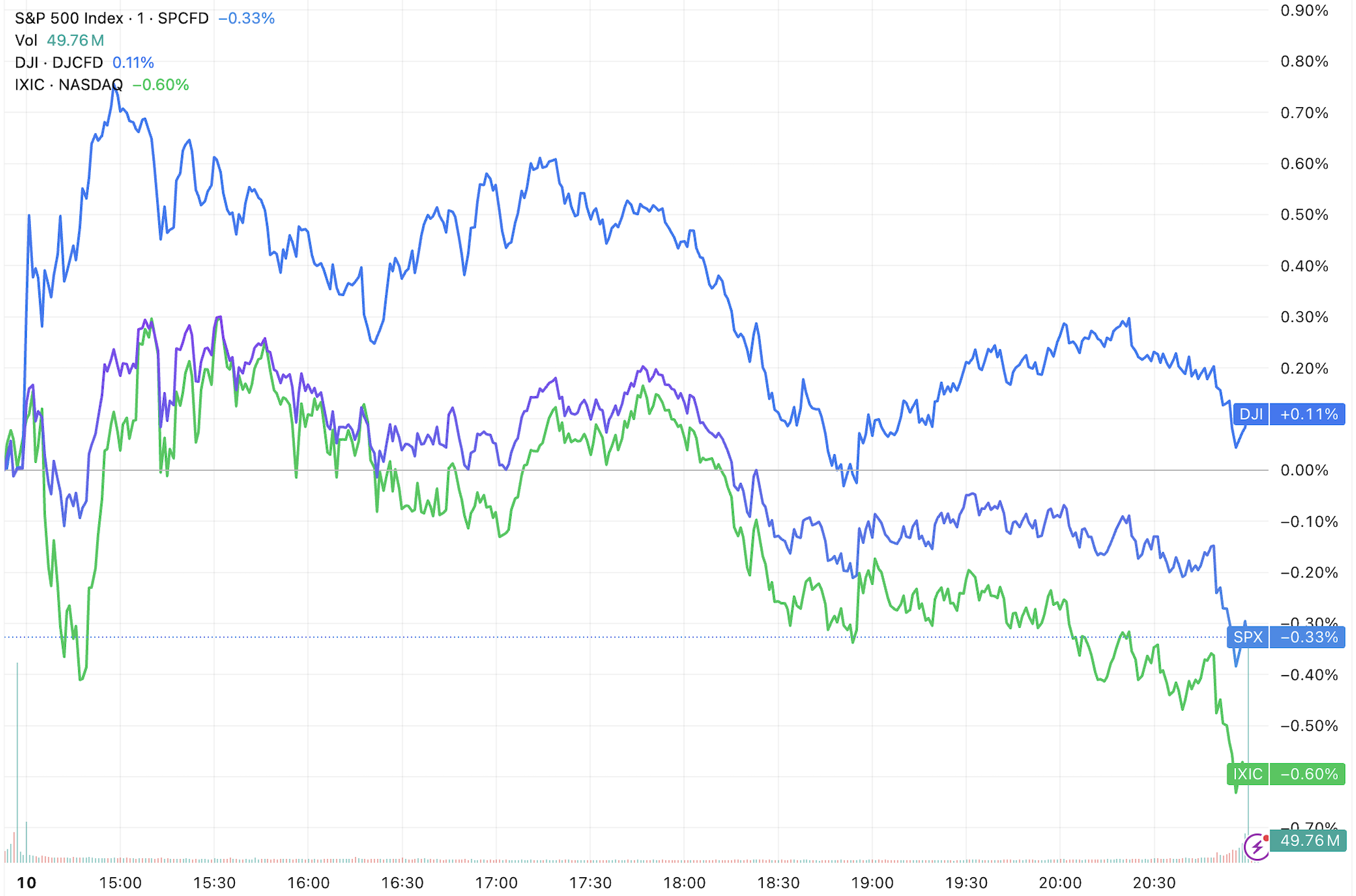 (三大指数日内走势,来源:TradingView)