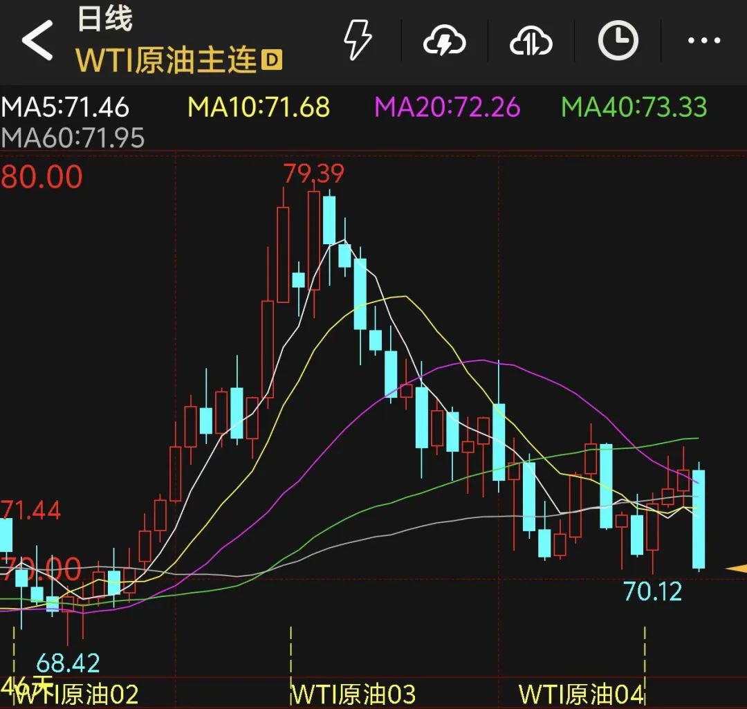 2月21日,国际原油期货价格显著下行。其中,WTI原油期货4月合约收跌2.87%,报70.40美元/桶;布伦特原油期货4月合约收跌2.68%,报74.43美元/桶。