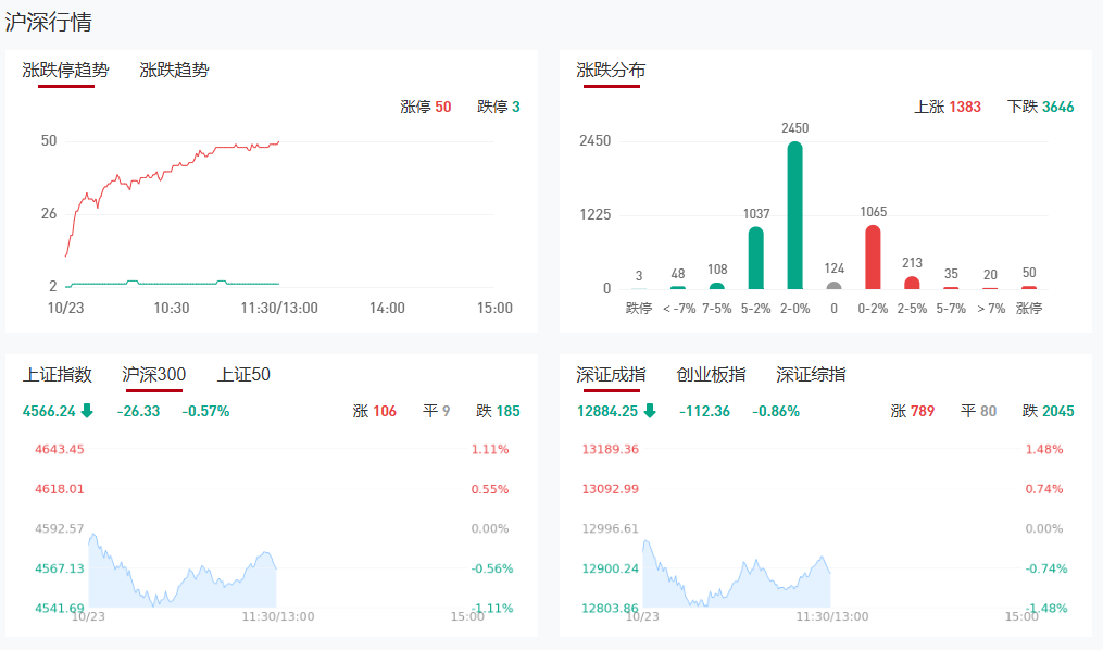 市场早盘震荡调整,量能再度萎缩,沪深两市半日成交额1.05万亿,较上个交易日缩量508亿。盘面上热点较为杂乱,超3800只个股下跌。从板块来看,煤炭板块逆势走强,大有能源回封涨停晋级8连板,郑州煤电、辽宁能源等多股走出4天2板。深圳本地股集体上涨,深赛格等10余股涨停。传媒板块表现活跃,海看股份涨停。下跌方面,算力硬件方向集体下挫,CPO概念股领跌,天孚通信、长飞光纤等股大跌。超硬材料概念股走弱,力量钻石、四方达均跌超7%。