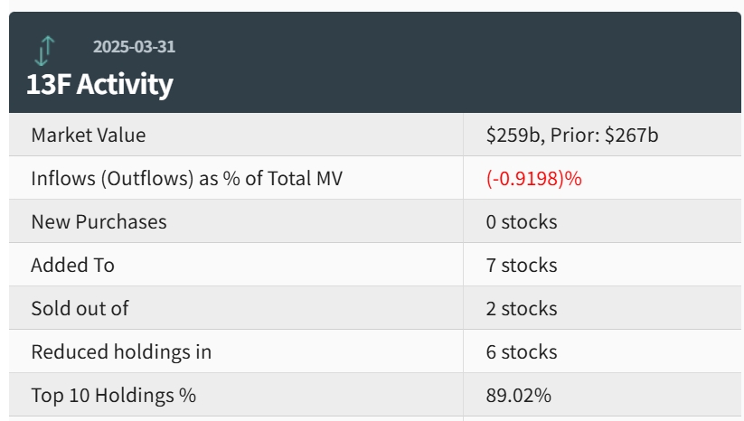 美国大型投资机构每个季度结束后的45天内需提交13F表格,披露其在公开市场上的长期持仓情况。需要说明的是,13-F表仅要求基金披露美股多头持仓,且因信息滞后性而未必能完整呈现投资动向,所以并不能完整反应该基金运作的全貌。但这一报告仍被市场广泛关注,作为判断机构资金流向的重要线索。